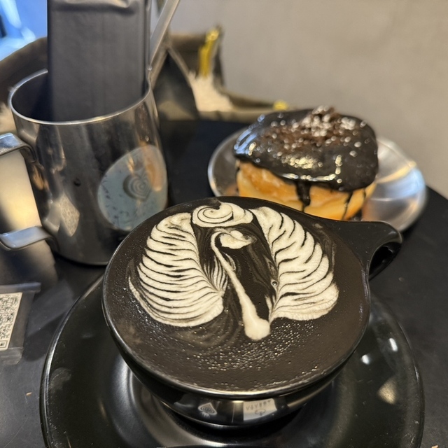 - ここが推し!おすすめポイント: このお店のシグネチャーは、竹炭を使った「ブラックラテ」!✨ 黒いラテを背景に、ミルクの白が際立つ、驚くほど繊細で、芸術的なラテアートが楽しめます。目の前で、見たこともないような模様(バラやペガサスなど)が描かれていく様子は、見入ってしまうほどの美しさです。